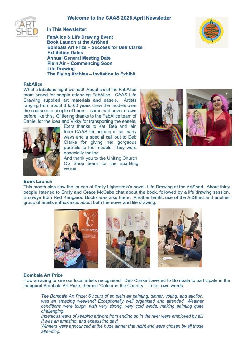 At its first meeting for 2023 the Art Society's Management Committee expressed members' sympathy to the family and friends of Elaine Cooper on her recent death; recognised her contribution to CAAS and progressed the organisation of a comprehensive exhibition of her artwork at the Art Shed.
